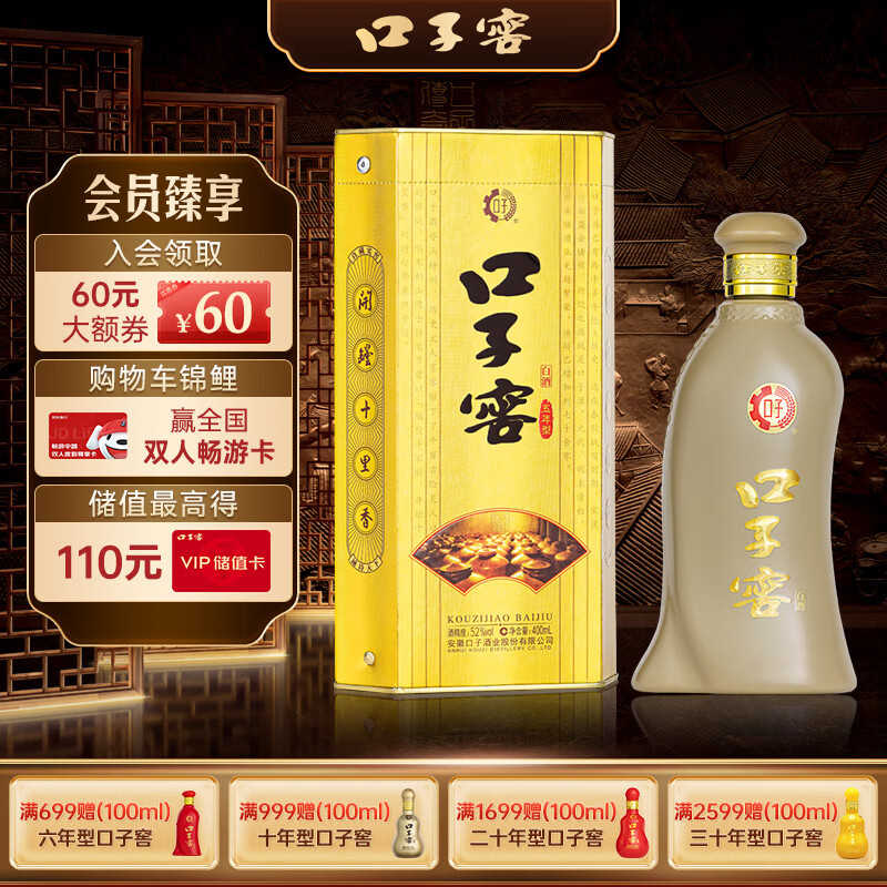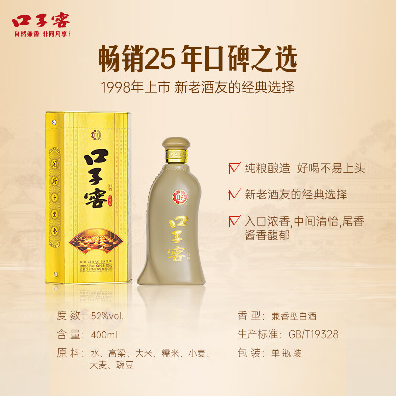 口子窖五年型兼香型白酒52度400ml*1瓶 口子酒 高度纯粮价格:142.00元!
