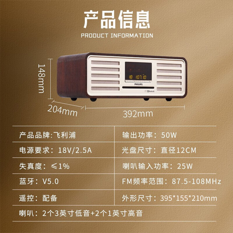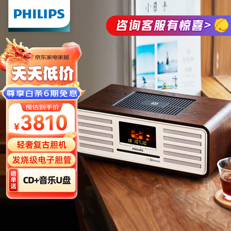 飞利浦(PHILIPS)TAM7208胆机音响CD机CD播放机桌面音响无线蓝牙音箱迷你音响FM收音机播放器价格:4010.00元!
