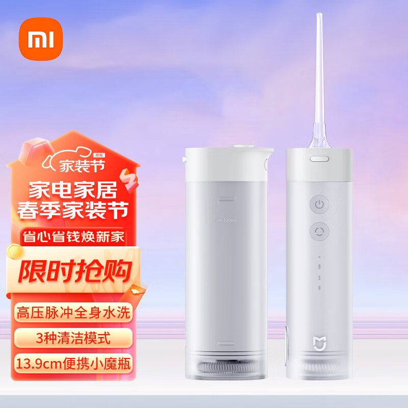 米家 小米便携式冲牙器洗牙器清洁口腔 高压脉冲全身水洗 60天长续航 象牙白 礼物推荐价格:199.00元!