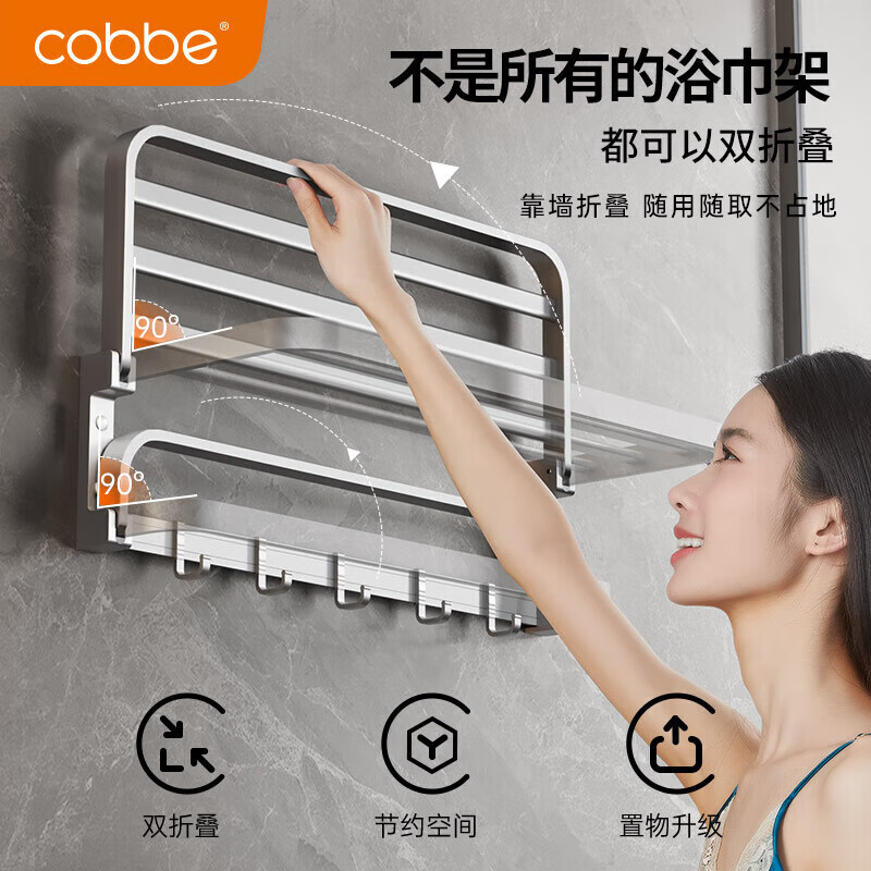 卡贝(cobbe)浴室毛巾架壁挂式免打孔卫生间太空铝挂件浴巾架厕所置物架洗手间价格:118.00元!