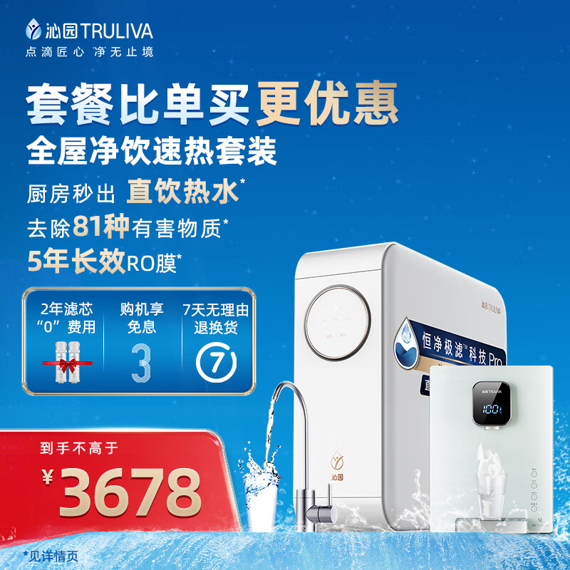 沁园(TRULIVA)小白鲸Pro1000G二件套装 净水器UR-S51046i+加热管线机LNW580-5W 加热净水器套装价格:3578.00元!