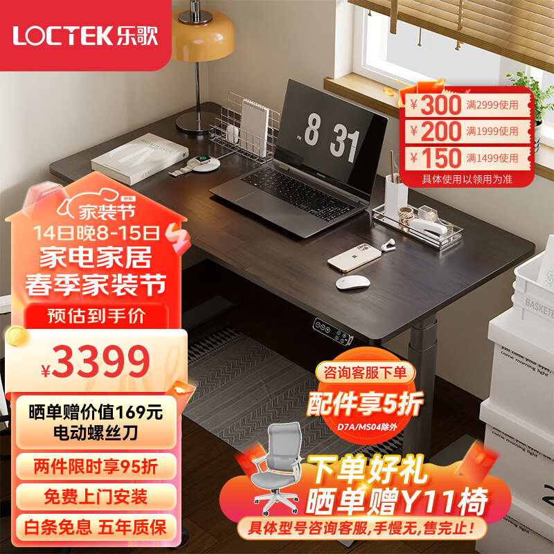 乐歌电动升降桌电脑桌站立办公学习桌 E6/1.6m 实木黑胡桃木色套装价格:3399.00元!