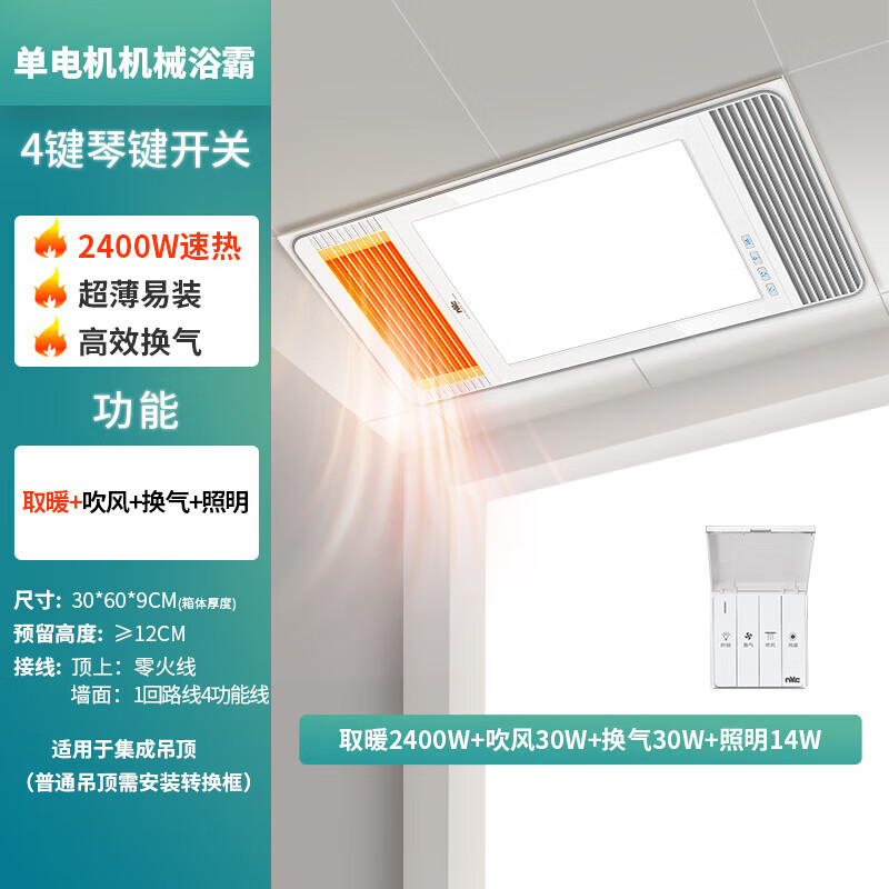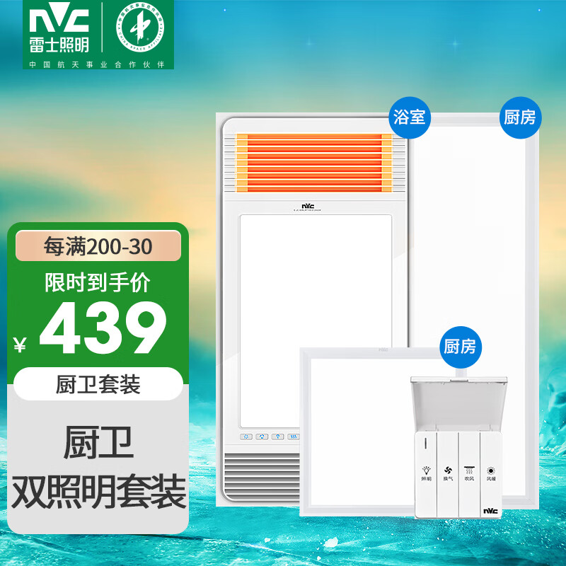 雷士(NVC)多功能风暖浴霸风暖排气扇照明一体暖风机浴室取暖器+面板灯套餐B价格:499.00元!