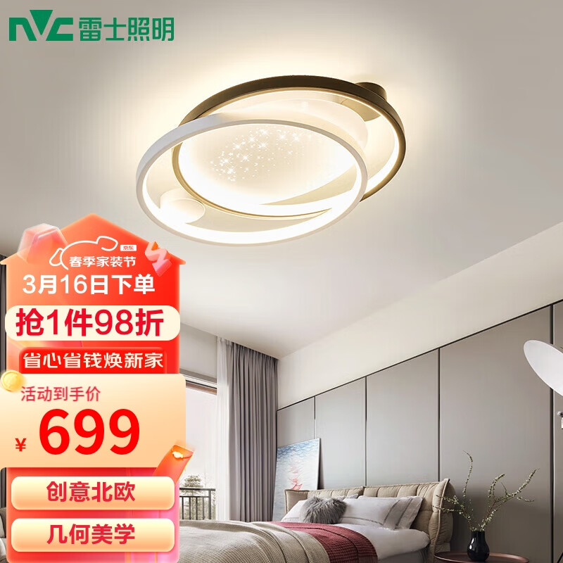 雷士(NVC)客厅灯灯具后现代简约LED吸顶灯大气北欧创意房间灯书房-星雨圆价格:713.00元!