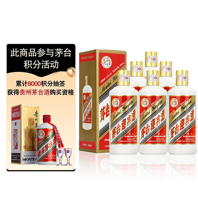 茅台 茅台迎宾酒 飞天迎宾 酱香型白酒 53度 500ml*6瓶 整箱装价格:4799.00元!