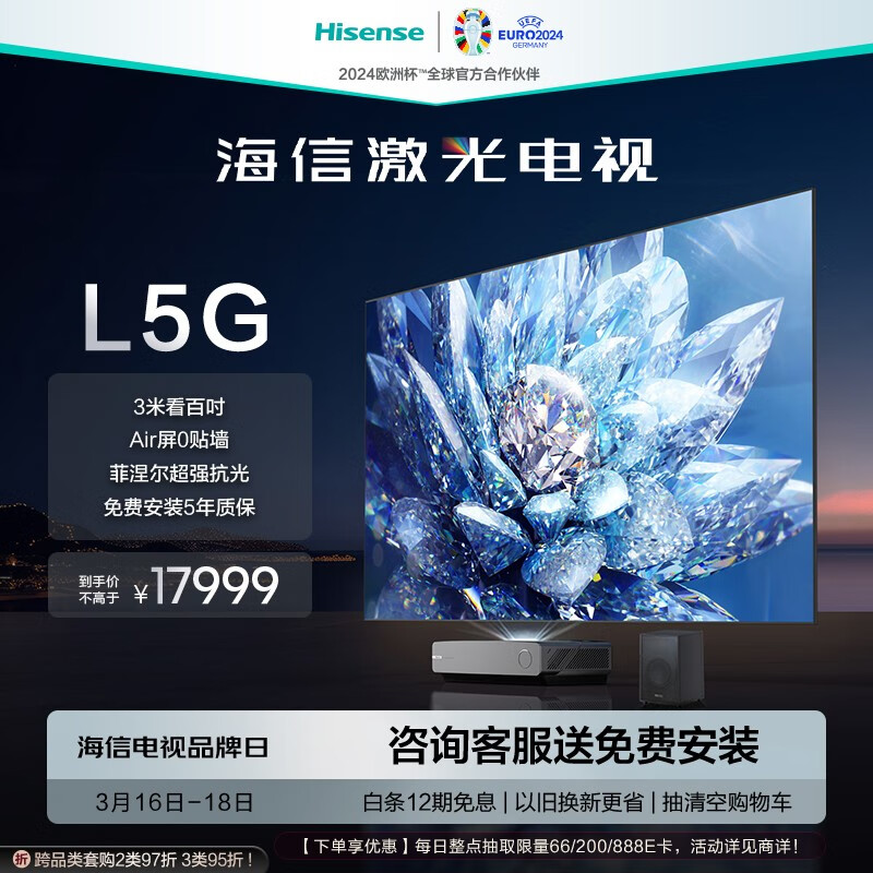 海信激光电视100L5G 100英寸电视 4K超高清 超薄屏 智能电视机 免费安装 以旧换新价格:17999.00元!