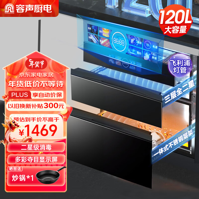 容声(RONGSHENG)嵌入式消毒柜 家用消毒碗柜 二消毒 三门三层 彩屏预约童锁120L大容量G80价格:1439.00元!