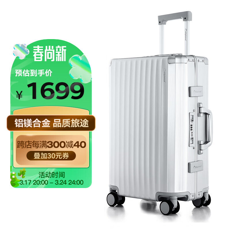 Diplomat外交官行李箱大容量镁铝合金铝框男女旅行拉杆箱TL-25053银24英寸价格:1969.00元!