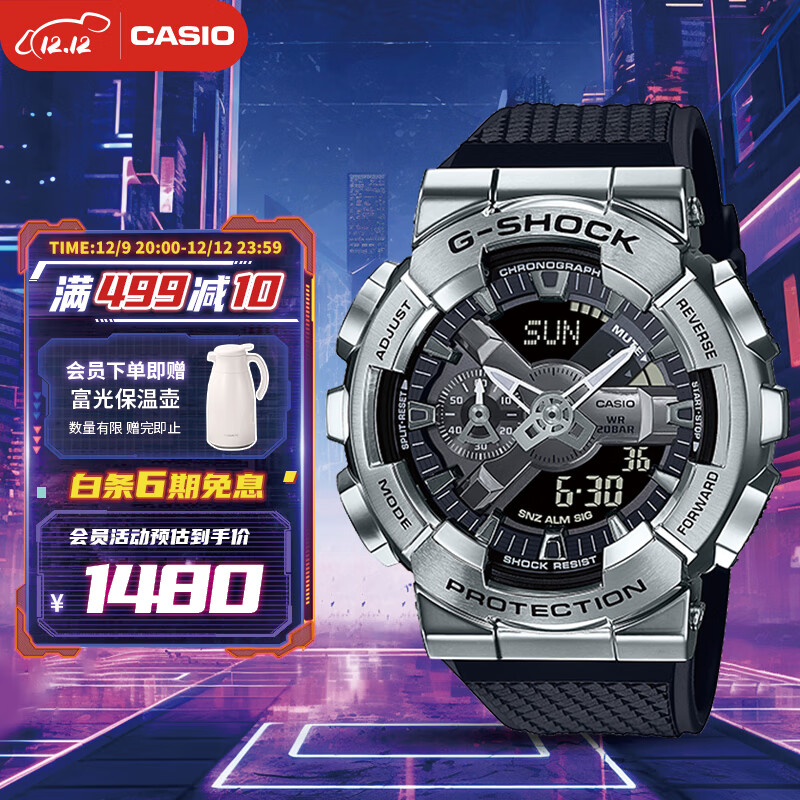 卡西欧(CASIO)手表男士小钢炮G-SHOCK金属表壳运动学生生日礼物送男友GM-110-1A价格:1490.00元!