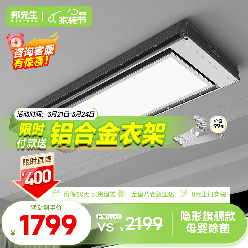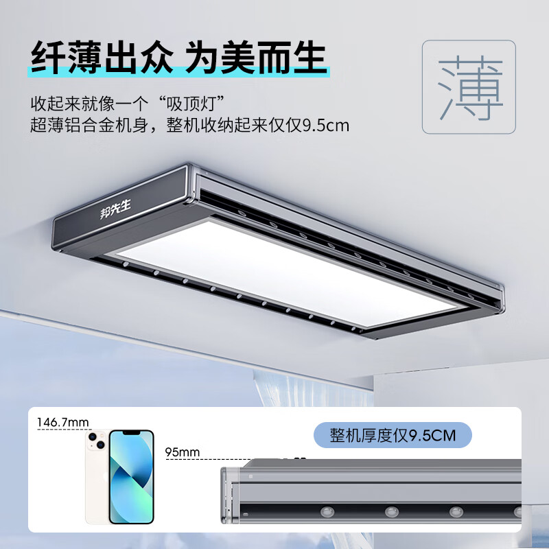 邦先生电动晾衣架智能阳台全自动升降超薄隐形伸缩嵌入式凉晒衣杆机M33C价格:2199.00元!