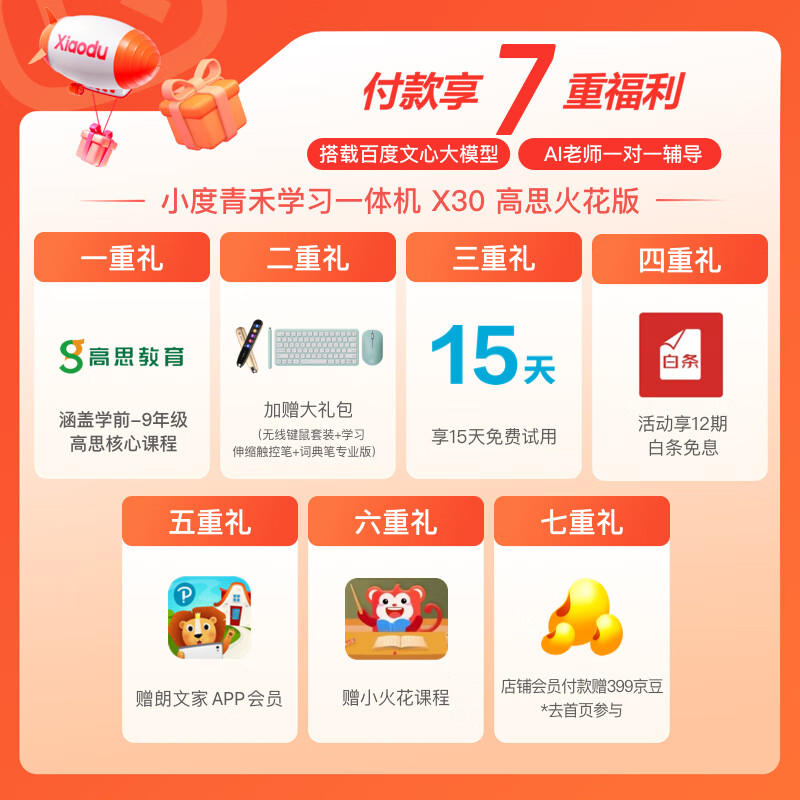 小度学习一体机X30高思火花版(8+256G) 17.4英寸小学到高中平板电脑 百度文心大模型 AI精准学火花课价格:8299.00元!