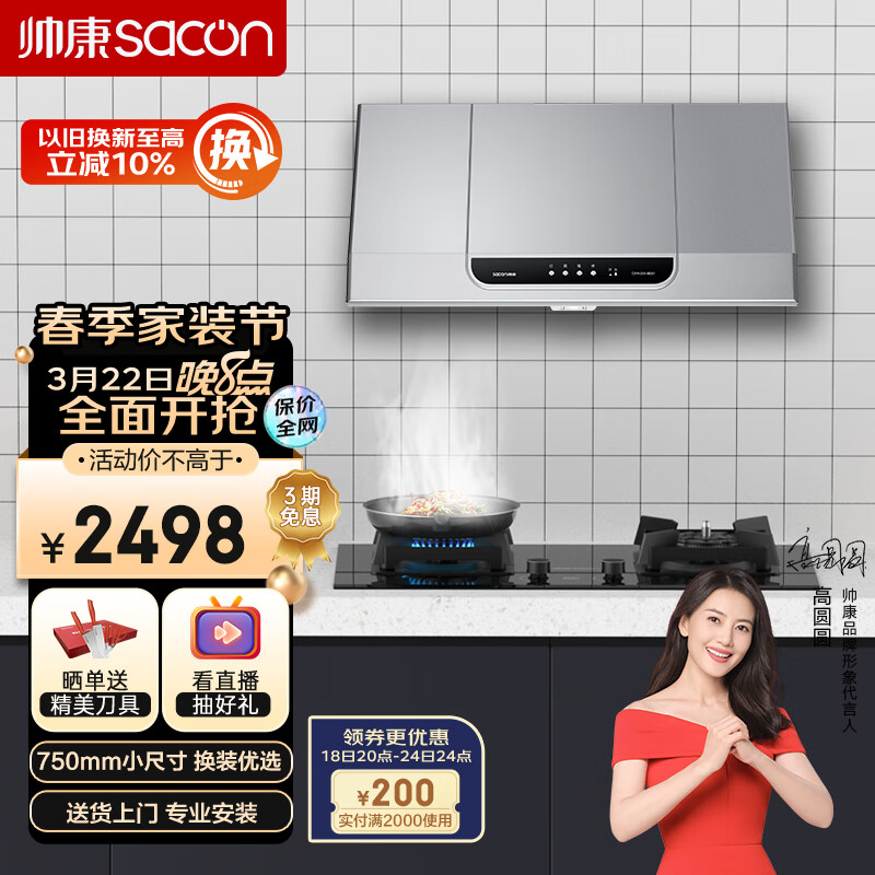 帅康(Sacon)抽油烟机烟灶套装家用大风量中式燃气灶油烟机灶具套装小尺寸换装优选MD01+E8D01F 天然气价格:2498.00元!