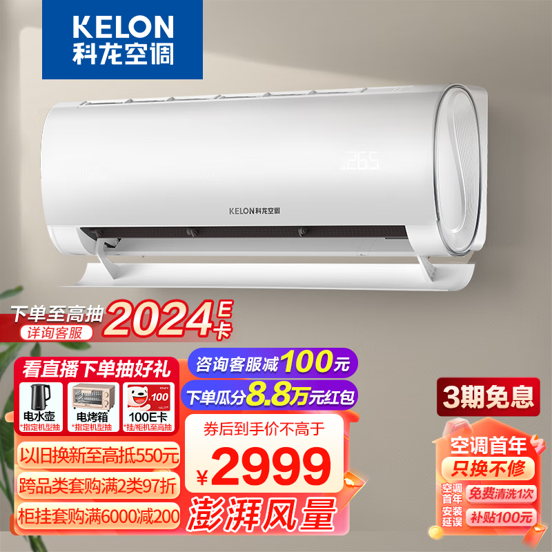 科龙(KELON)空调 2匹 新一级能效 大风量急速冷暖 变频省电 壁挂式挂机 卧室客厅空调KFR-50GW/QY1-X1价格:3099.00元!