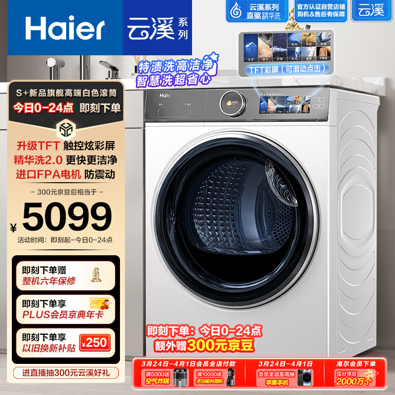 海尔(Haier)滚筒洗衣机全自动 云溪386W 家用10公斤【直驱精华洗XQG100-BD14386WTLU1】超薄大彩屏 以旧换新价格:5399.00元!