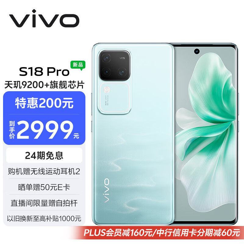 vivo S18 Pro 12GB+256GB 青澈 天玑9200+旗舰芯片 后置影棚级柔光环 5000mAh超薄蓝海电池 拍照 手机价格:3199.00元!