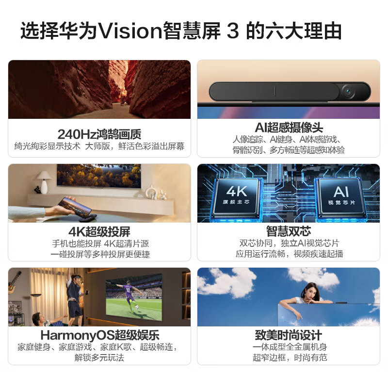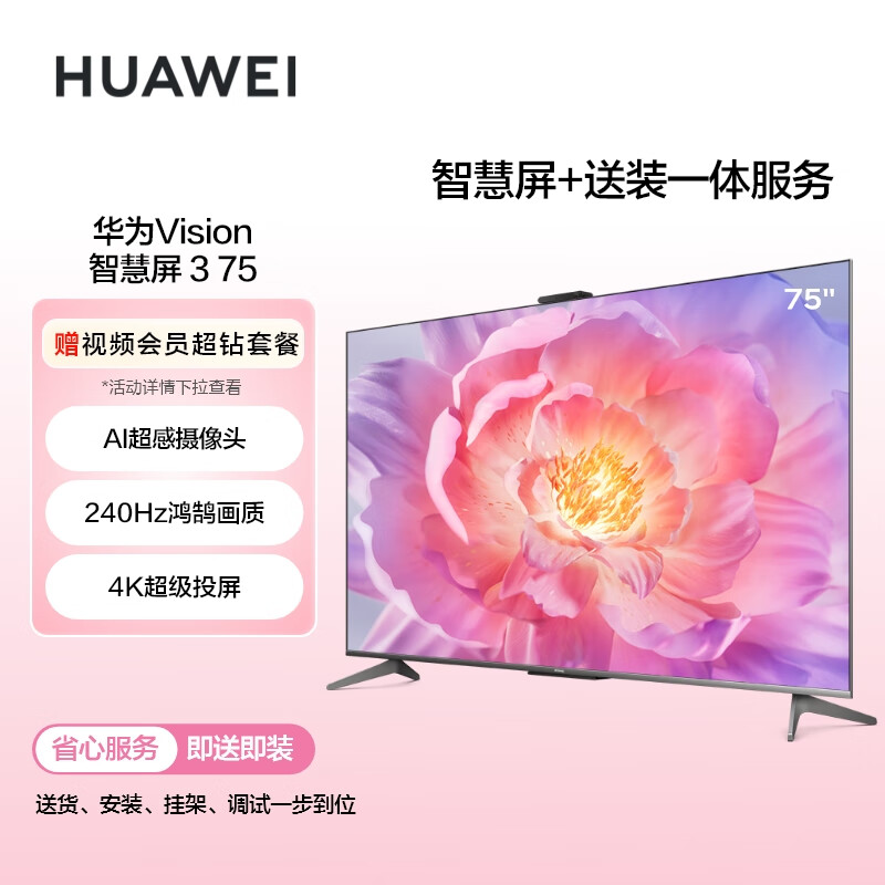 华为Vision智慧屏 3 75英寸+免费安装|含挂架送装一体 4K超级投屏240Hz超高清超薄护眼电视机HD75QINA价格:5698.00元!