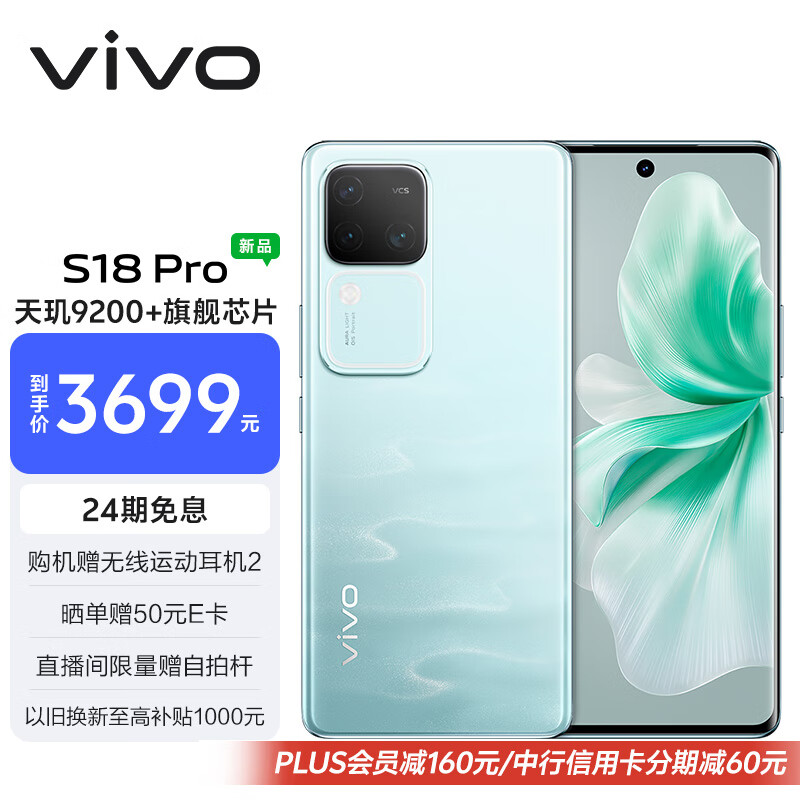 vivo S18 Pro 16GB+512GB 青澈 天玑9200+旗舰芯片 后置影棚级柔光环 5000mAh超薄蓝海电池 拍照 手机价格:3699.00元!