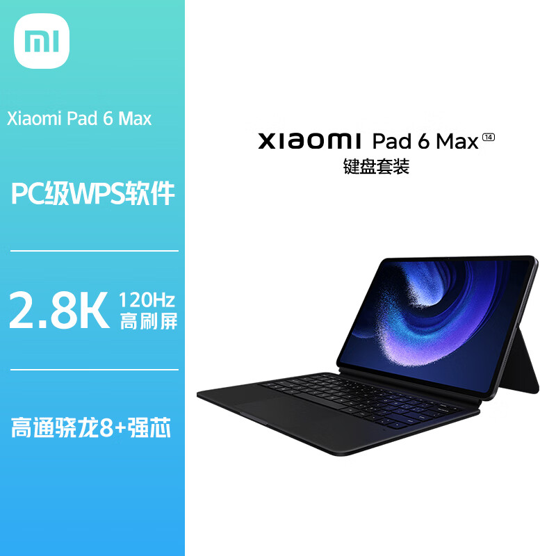 小米平板6 MAX 14英寸 高通骁龙8+ PC级WPS 2.8K 120Hz 12+256GB大屏办公平板笔记本电脑 黑色【键盘套装】价格:4598.00元!