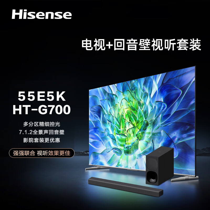 海信电视55E5K+HT-G700沉浸追剧套装 55英寸 ULED 多分区 4+64GB 4K 144Hz超高清智慧屏电视机价格:5289.00元!