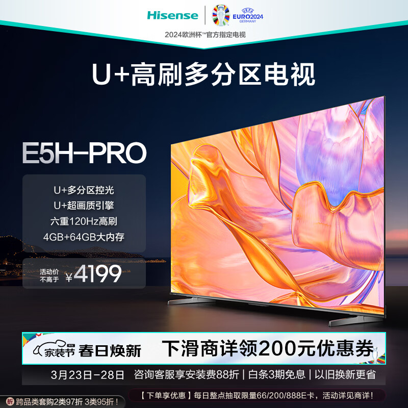 海信电视75E5H-PRO 75英寸 多分区控光 六重120Hz高刷 4K高清智慧屏 液晶智能平板电视机 以旧换新价格:4399.00元!