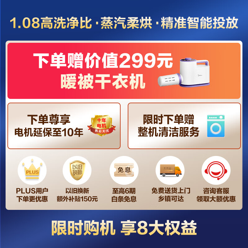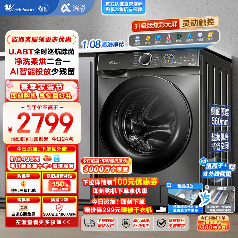 小天鹅(LittleSwan)滚筒洗衣机全自动 浣彩系列 10KG洗烘一体 巡航除菌 彩屏智能投放 1.08洗净比 TD100VT6XR17价格:2999.00元!