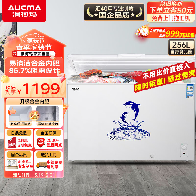 澳柯玛(AUCMA)256升家用冰柜 86.7%阻霜 商用单温冷柜 冷藏冷冻柜 母乳囤货冰箱 一级能效 BC/BD-256NE 以旧换新价格:1199.00元!