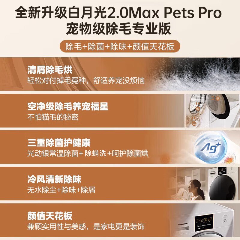 松下(Panasonic)白月光2.0PP Max 升级护理版 12+10洗烘套装 原装变频压缩机 冷热除菌 宠物除毛烘 3NB1E+82QR1价格:17639.00元!