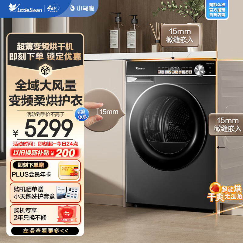 小天鹅(LittleSwan)10公斤热泵烘干机家用 全自动干衣机 超薄全嵌 变频 除菌除螨除潮 TH100VH81MAX价格:5299.00元!