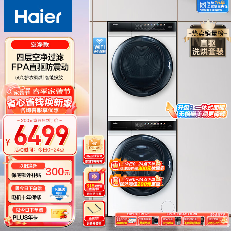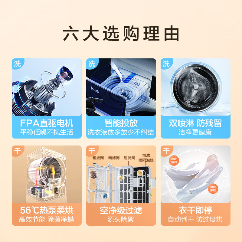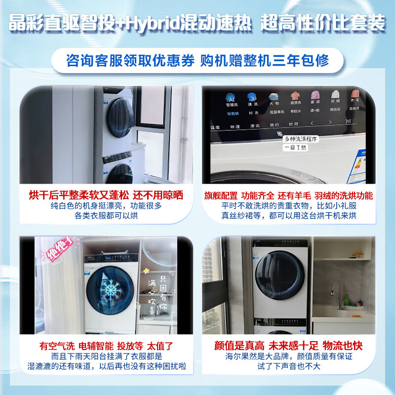 海尔(Haier)Mate7W白洗烘套装 10Kg直驱滚筒洗衣机全自动+热泵烘干机家用 智能投放 速热补偿 MATE7WU1组合价格:6999.00元!