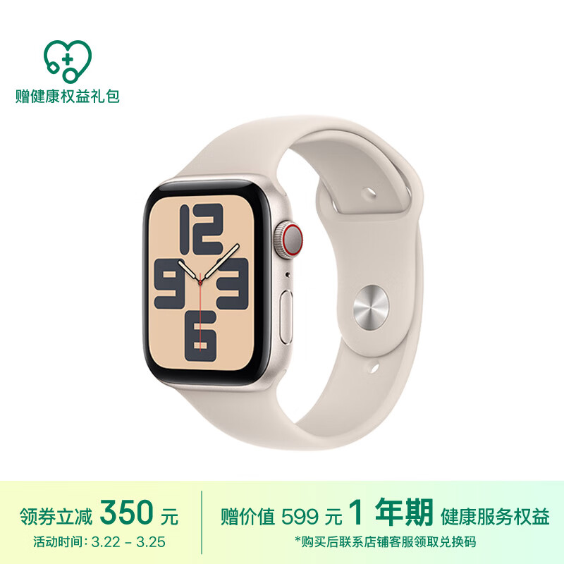 Apple/苹果 Watch SE 2023款智能手表GPS+蜂窝款44毫米星光色铝金属表壳星光色运动型表带S/M MRGV3CH/A价格:2549.00元!