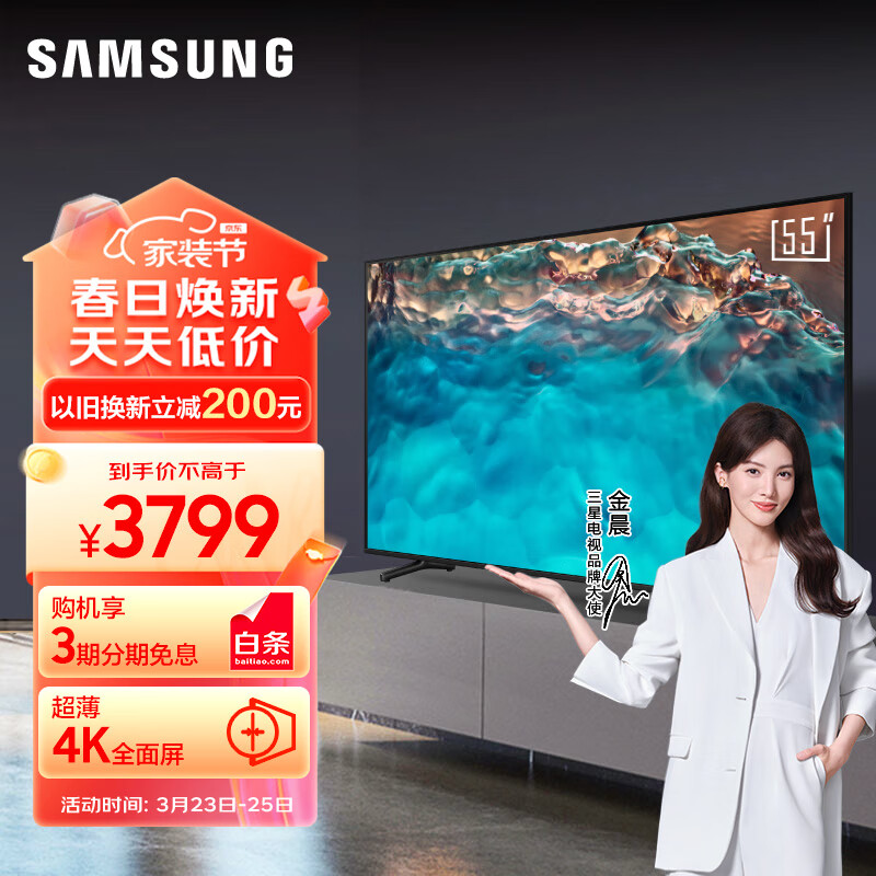 三星(SAMSUNG)55CU8000 55英寸 平板液晶电视 超薄4K屏 AI智能补帧 无开机广告 UA55CU8000JXXZ价格:3999.00元!
