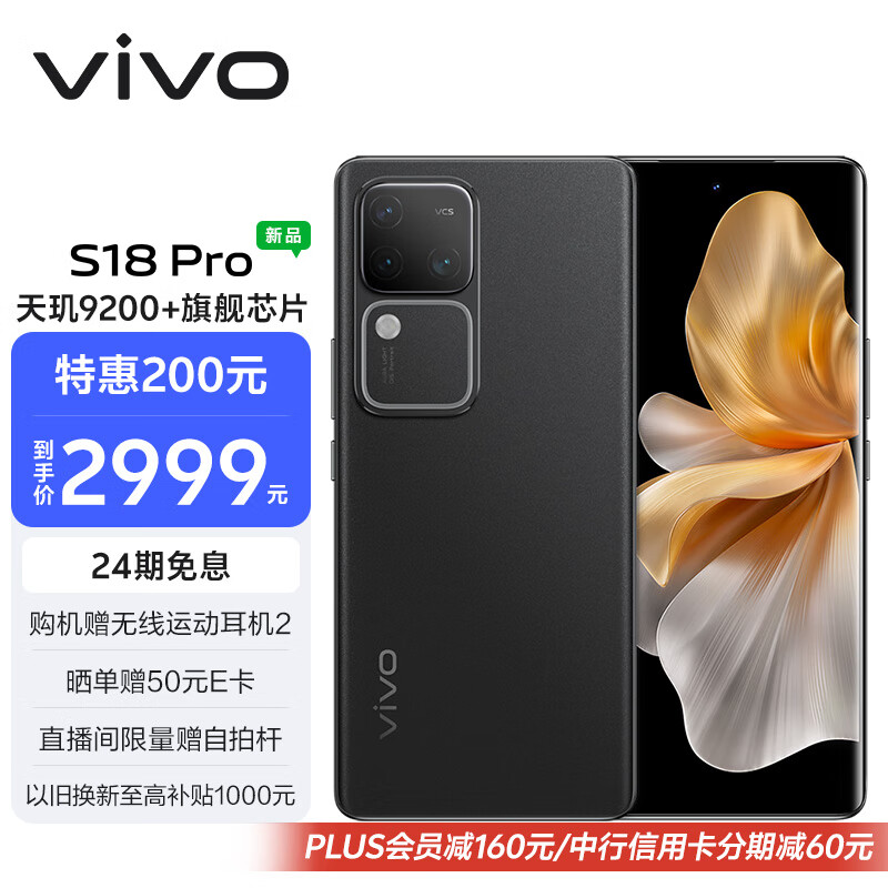 vivo S18 Pro 12GB+256GB 玄黑 天玑9200+旗舰芯片 后置影棚级柔光环 5000mAh超薄蓝海电池 拍照 手机价格:3199.00元!