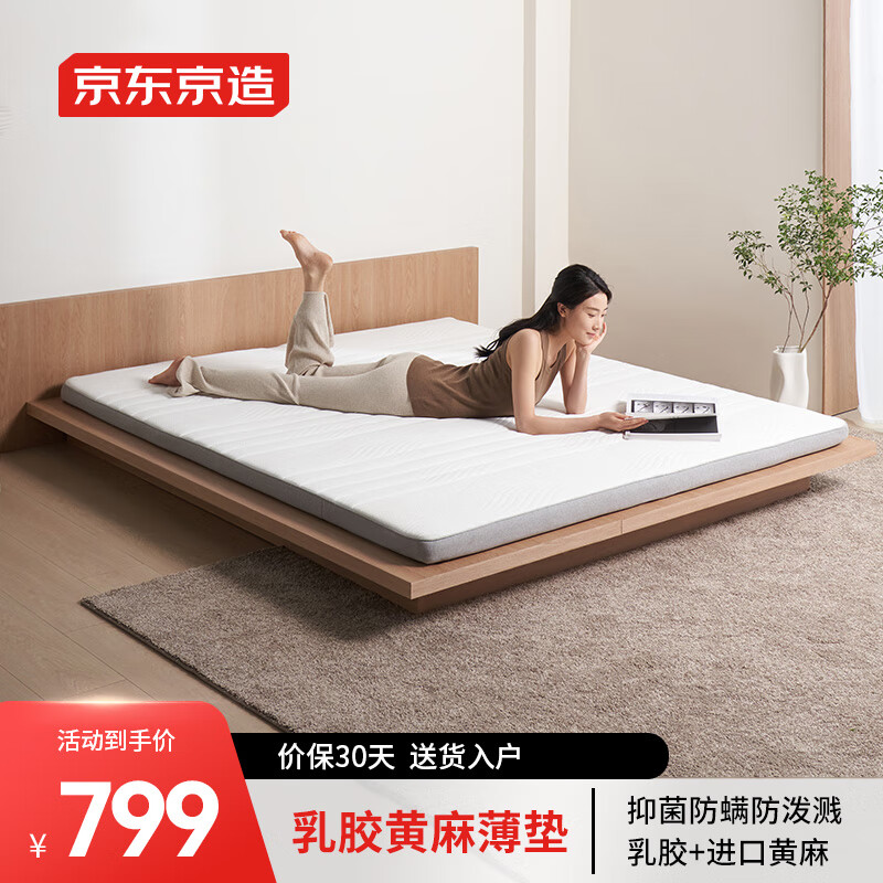 京东京造乳胶床垫 94%乳胶|进口黄麻|防泼溅面料 榻榻米宿舍垫1.8×2米MH03价格:799.00元!