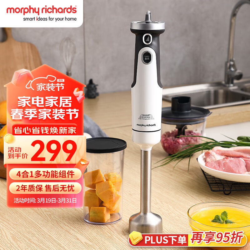 摩飞电器(Morphyrichards)绞肉机 家用多功能料理棒 婴儿辅食机 分体可拆 多配件搭配 佐料机 MR6006 白色价格:299.00元!