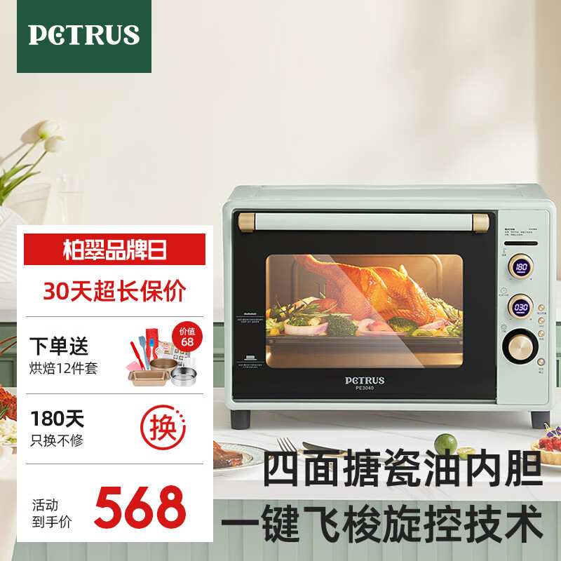 柏翠(petrus)电烤箱家用40L容量搪瓷内胆独立控温热风循环PE3040GLC价格:568.00元!
