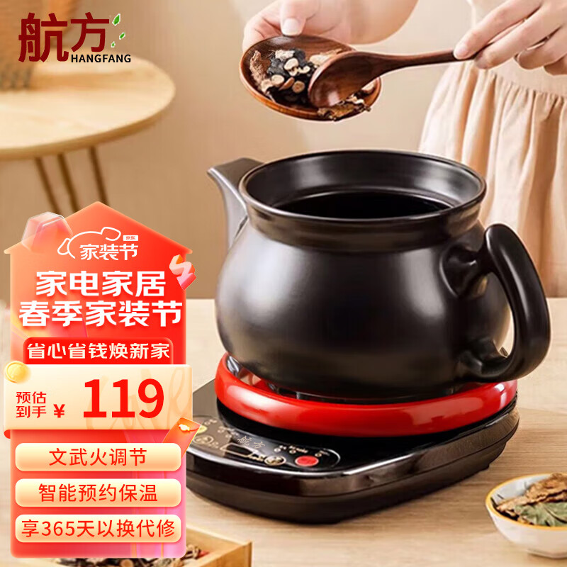 航方煎药壶智能全自动陶瓷电砂锅中药锅熬药罐中药煲2.5L分体式炖药锅煮药机价格:119.00元!
