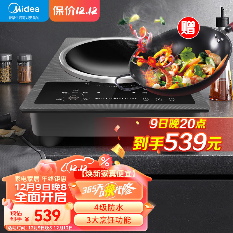 美的Midea电磁炉 家用凹面电磁灶 3300W大功率速热触控微晶面板防水保护定时炒锅一体 【3300W凹面款】平底圆底锅可用 大功率电磁炉价格:699.00元!