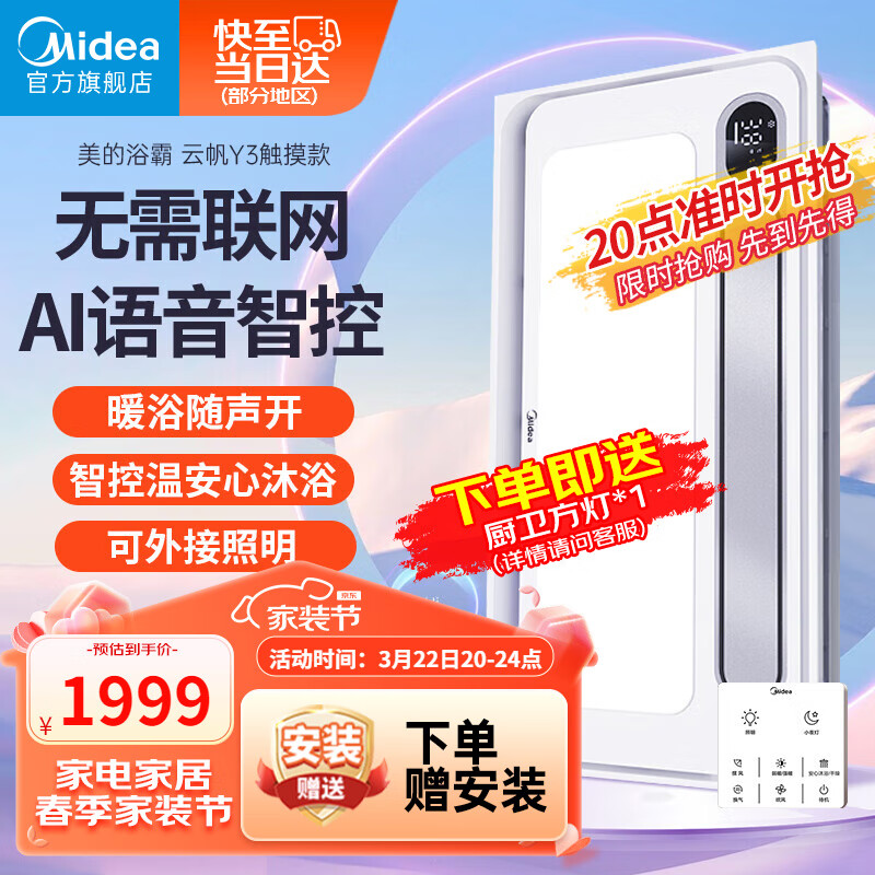 美的(Midea)风暖浴霸排气扇照明一体卫生间暖风机浴室集成吊顶取暖器智能语音价格:1999.00元!