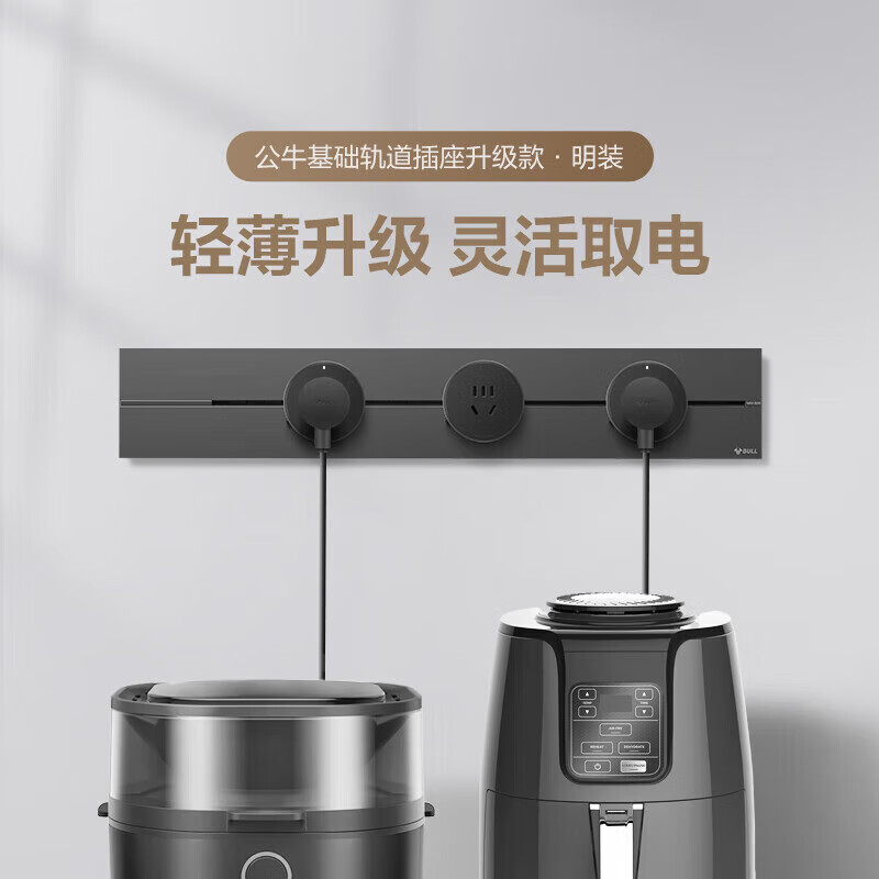 公牛(BULL)明装轨道插座 大师可移动滑轨插座 500mm+3个五孔墨云灰GN-GB3价格:294.00元!