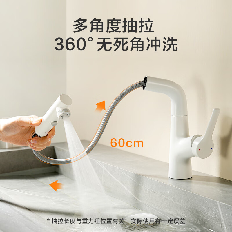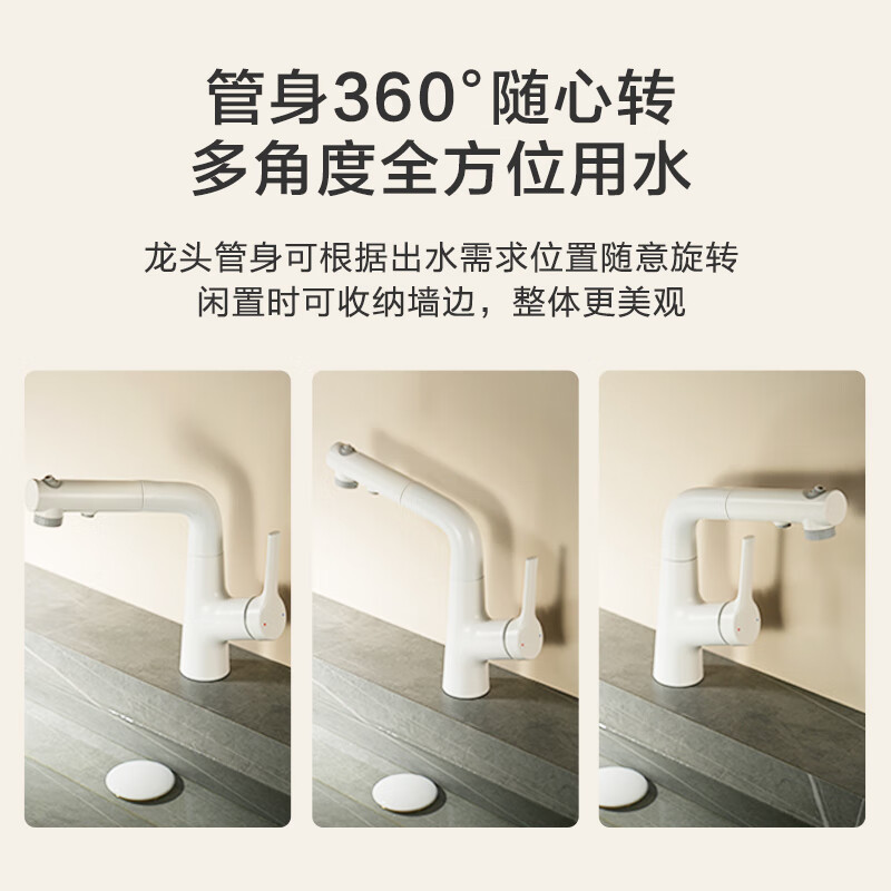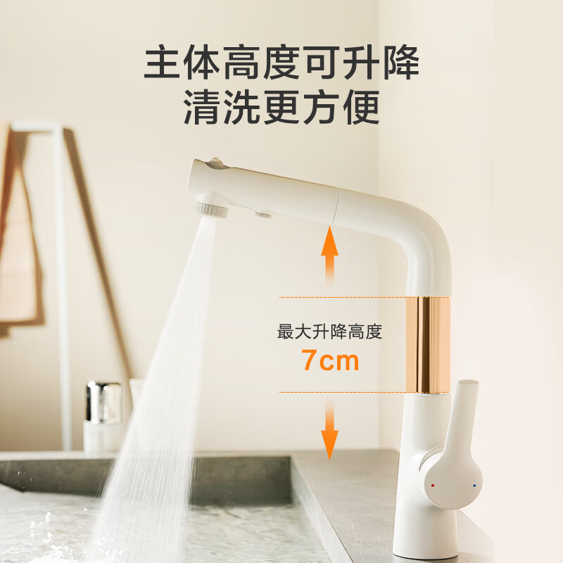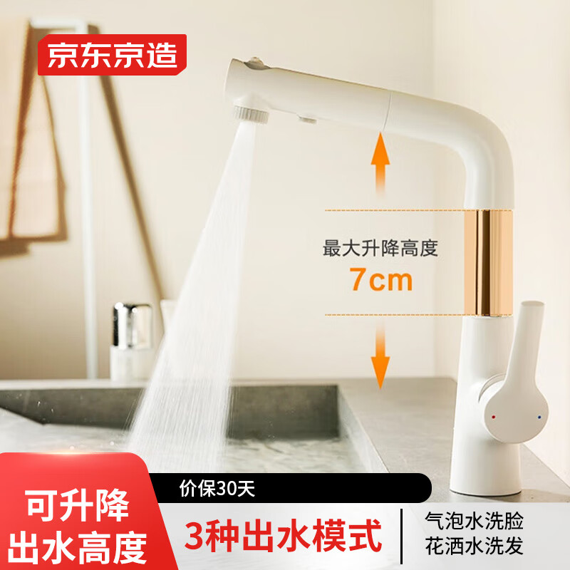 京东京造浴室面盆升降抽拉水龙头 3功能冷热双控卫生间台盆漱口 奶油白价格:329.00元!