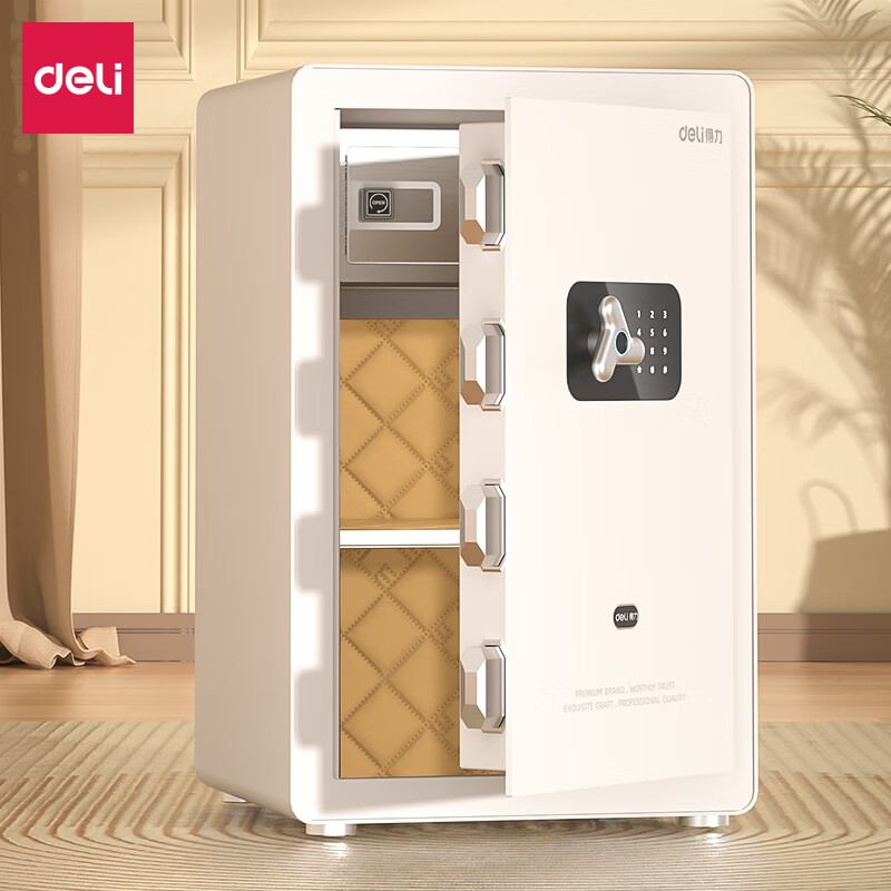 得力保险柜 家用指纹密码保险箱 办公小型可入柜入墙保管箱 凌曜白AE652高60cm价格:899.00元!