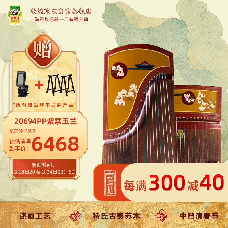 敦煌牌 古筝 20694PP 浮光溢彩紫禁玉兰 考级演奏筝价格:7428.00元!