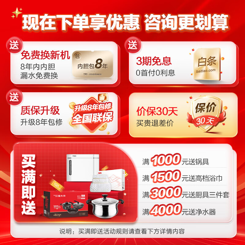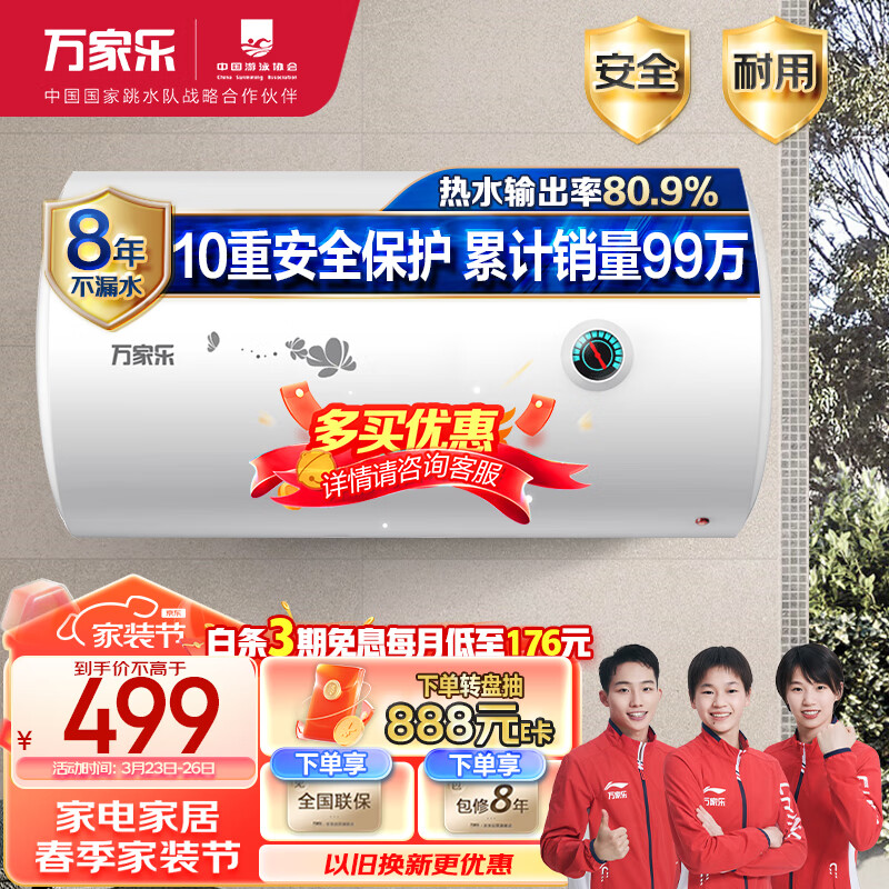万家乐 50升家用电热水器 2100W速热 加长防电墙 经济节能下潜加热 抗腐耐用小巧易操控D50-H111B价格:499.00元!