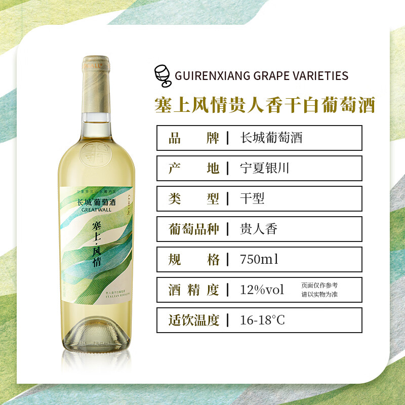 长城宁夏贺兰山东麓 塞上风情贵人香干白葡萄酒 750ml*6 整箱装价格:331.00元!