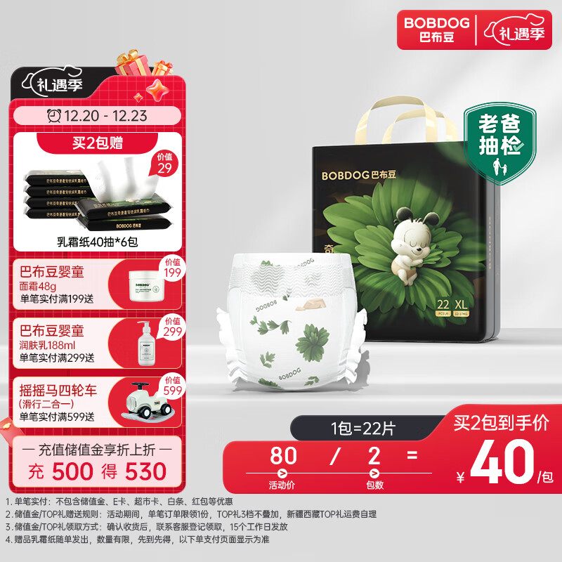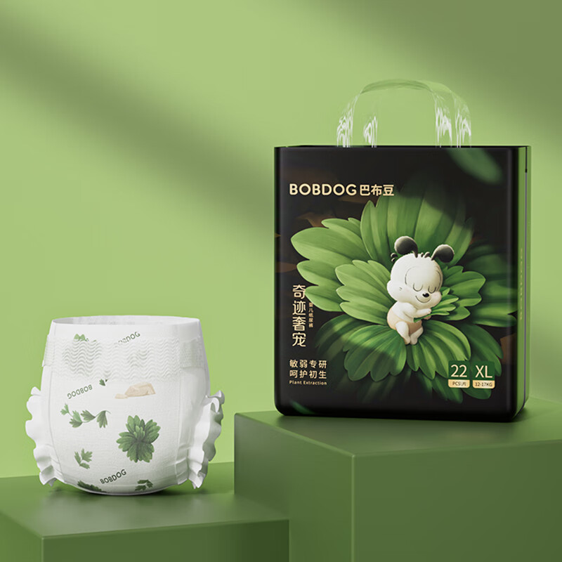 巴布豆(BOBDOG)【老爸】奇迹奢宠婴儿纸尿裤XL码22片(12-17kg)植萃舒敏价格:79.00元!