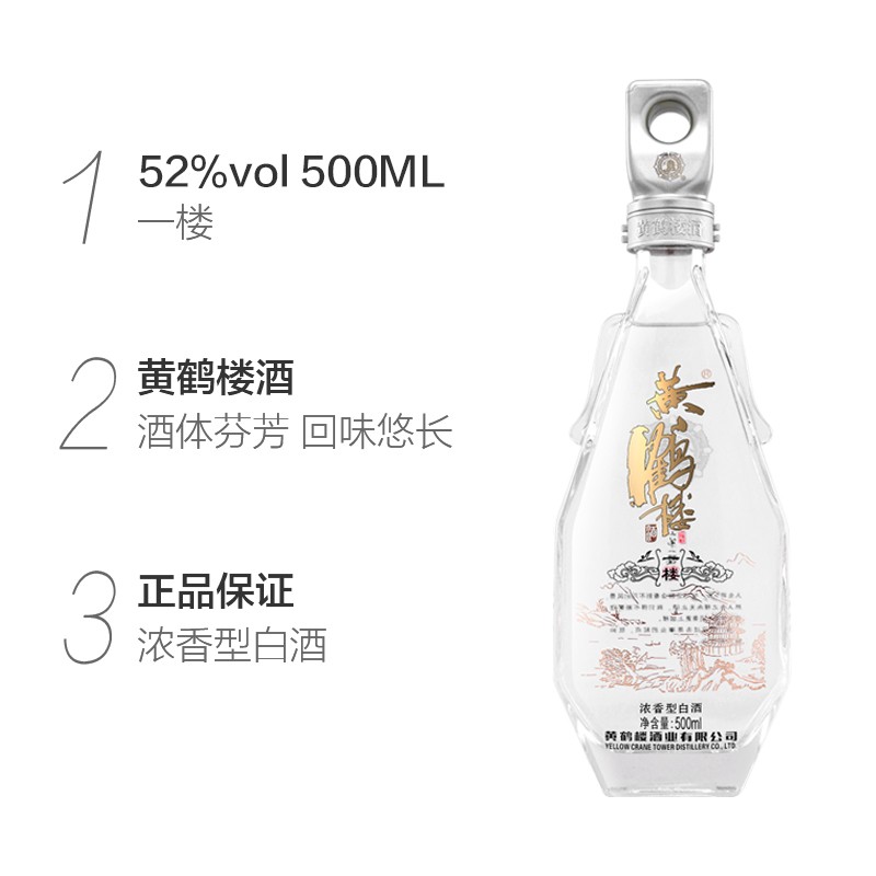 黄鹤楼酒 更上层楼 一楼 浓香型白酒 52度 500ml*6瓶 整箱装价格:720.00元!