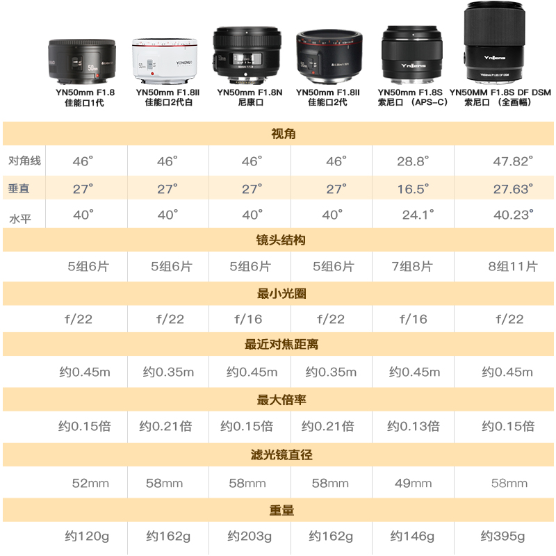 永诺YN50mm F1.8S DA DSM配置参数: