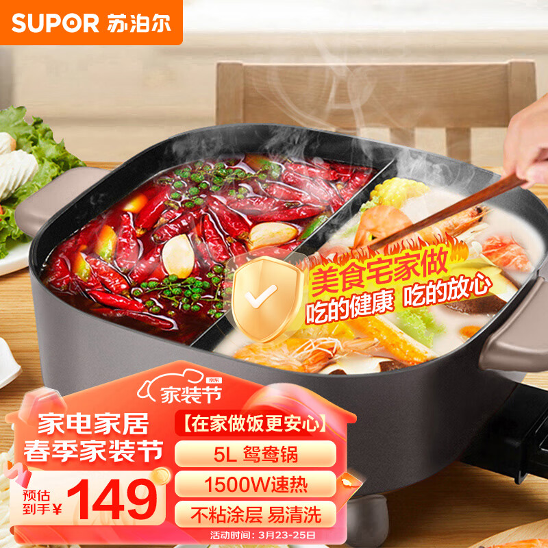 苏泊尔 SUPOR 电火锅 鸳鸯锅火锅专用锅涮肉锅电煮锅火锅锅 家用多功能锅 电热锅 多用途锅 H2828FK614Y价格:149.00元!