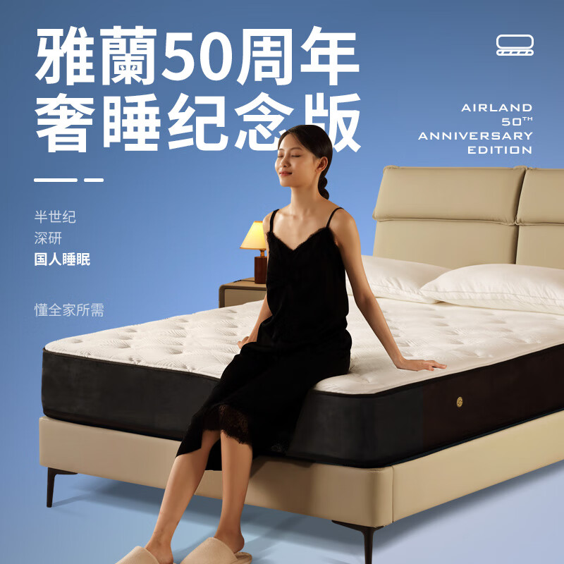 雅兰50周年纪念款 亲肤透气整网弹簧椰棕床垫 蘭朋友加硬版 1.8*2米价格:2699.00元!