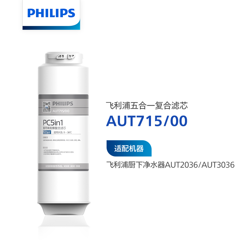 飞利浦(PHILIPS)家用净水器小方盒原装五合一复合滤芯 AUT715/00(适配设备2033/2036/2037/3038)价格:299.00元!